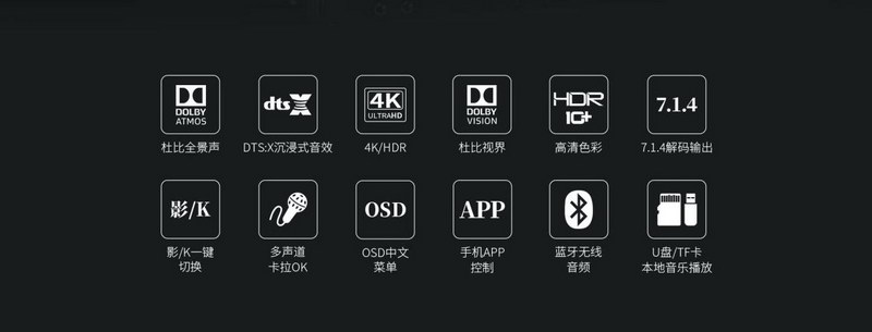 1.支持Dolby Atmos、DolbyTrue-HD及向下兼容所有杜比音頻編碼文件;